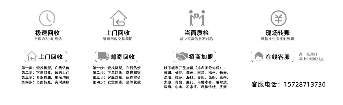 沅钊回收专注苹果设备回收,具有完善的产业链,平台一直以客户利益最大化为宗旨,严格遵守规范的、合理的估价流程,为客户提供优质的回收服务。关于价格敏感问题,支持多平台估价方式,以切身行动为客户提供福利。在疫情期间,沅钊回收支持北京、上海、深圳、广州、西安、佛山、东莞、苏州、天津等地的上门回收服务,实现在家快速安全变现。